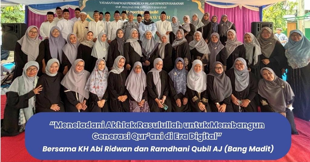 Kegiatan yang mengusung tema “Meneladani Akhlak Rasulullah untuk Membangun Generasi Qur’ani di Era Digital” ini dihadiri oleh seluruh civitas YDPI Uswatun Hasanah — mulai dari SMP, SMA, hingga SMK Uswatun Hasanah, beserta para guru, tenaga kependidikan, dan perwakilan orang tua siswa.
